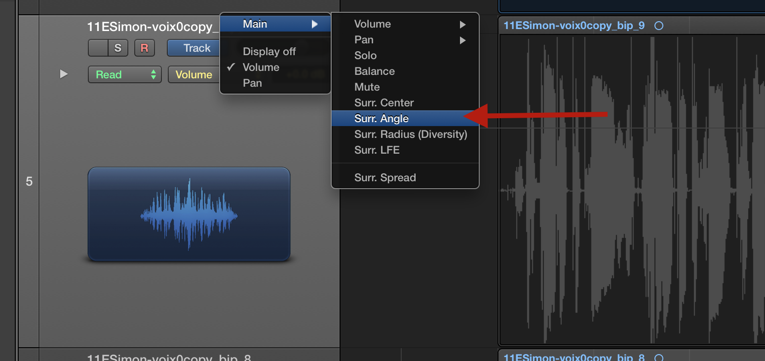 • Then by using the panning knot on that track, you can make the sound go from the Back-L speaker to the Back-R speaker.