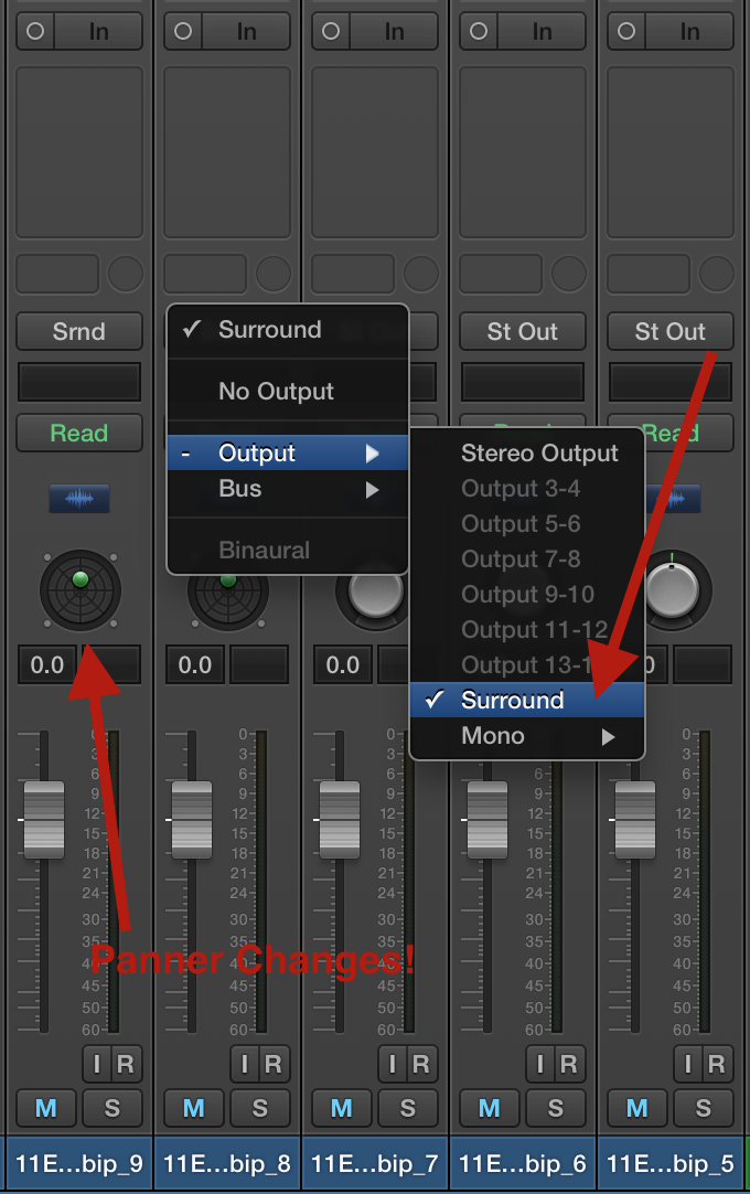 To Use the Surround Panner (Most Flexible Way to Send Sound to All Four Speakers):