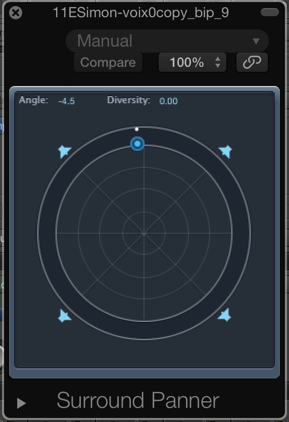 3- Use automation to control the Angle; NOTE: 0deg is front center; 180deg if back center; positive angles are on the right; negative values are on the left (i.e., avoid using the diversity and spread options):