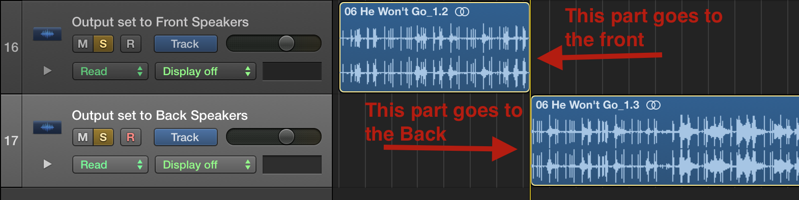 This is the simplest way to send sounds to the rear speakers. If you want to have one sound go from the front speakers to the rear speakers, then you must duplicate that sound's track (by pressing the "Create New Track with Duplicate Settings" button)….