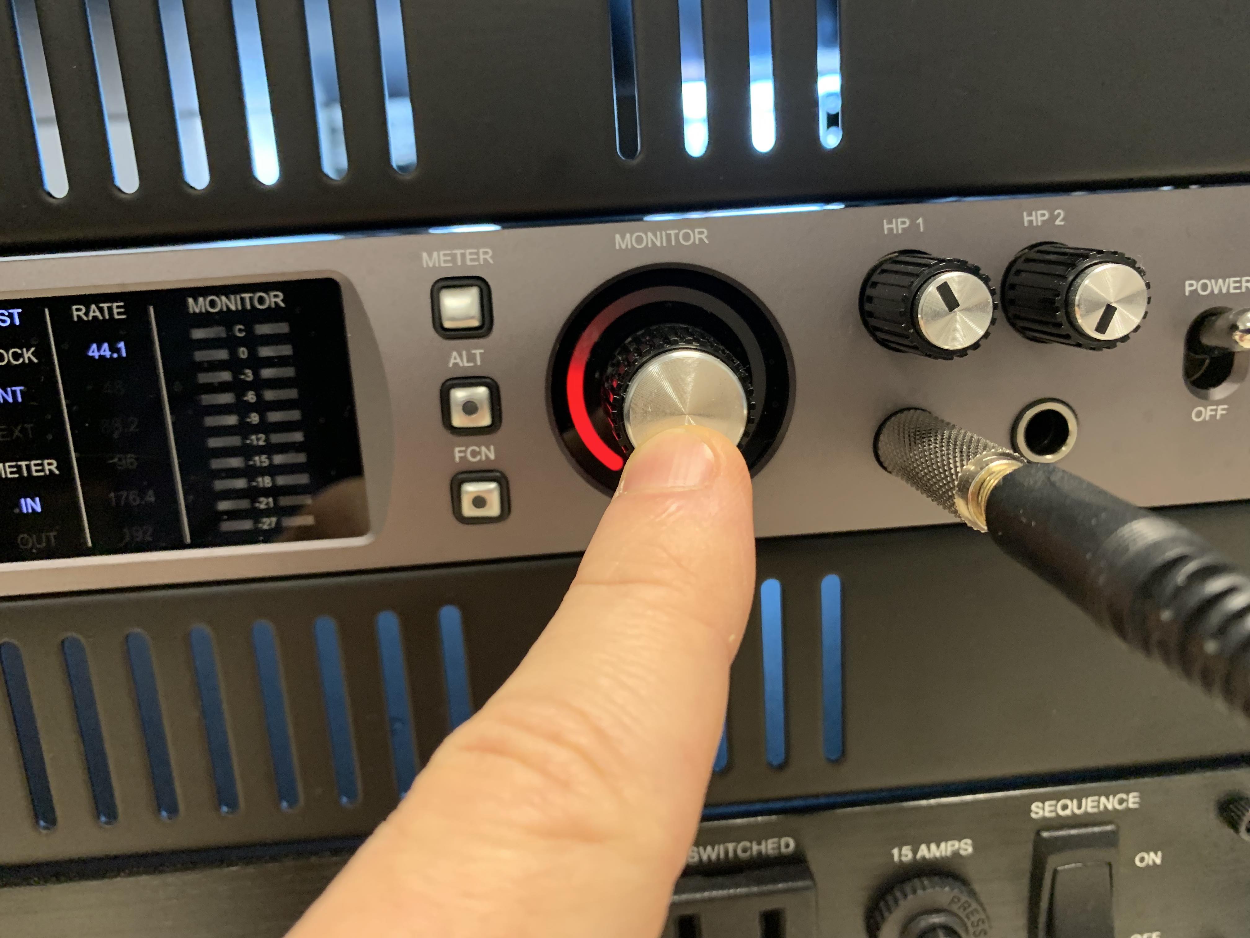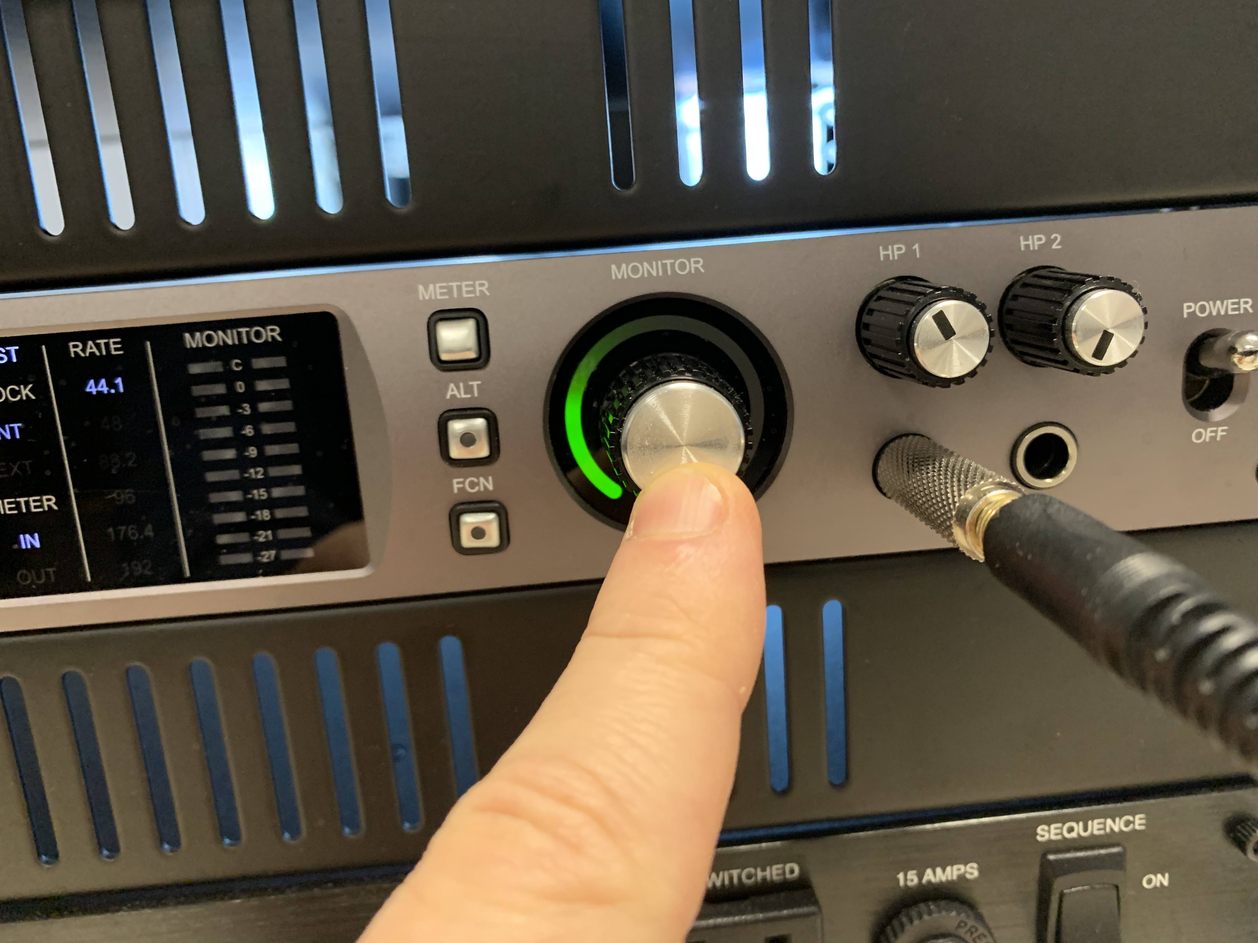 6- Make sure the speakers are muted (push the "Monitor" dial on the Apollo so that it turns RED).