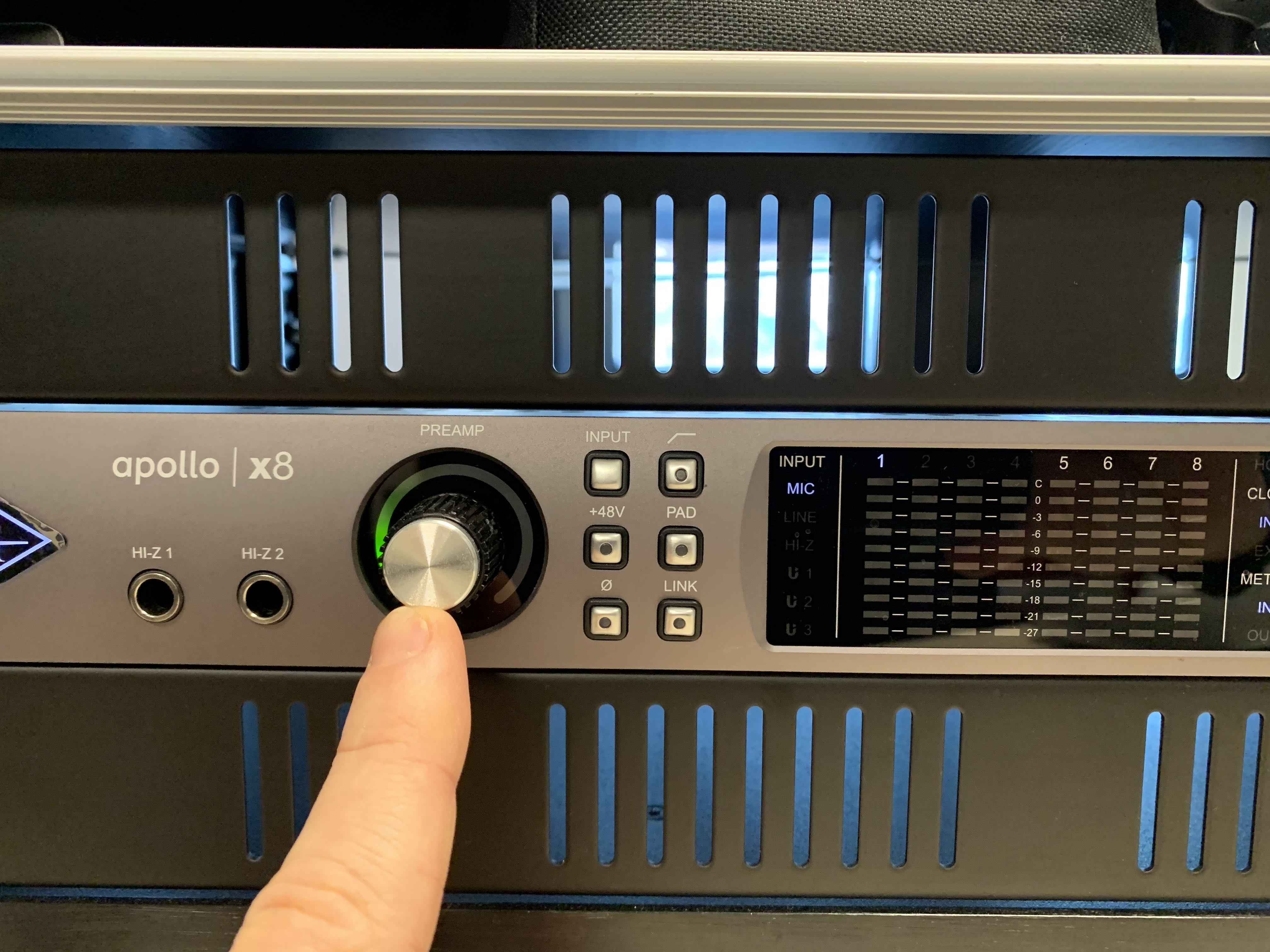 9- SET YOUR LEVELS! Look at the meters and adjust the "Preamp" dial on the Apollo until the loudest parts of what you're trying to record hits about -6dB. Avoid clipping as much as possible (i.e., you should never see the top of the meters turn red).