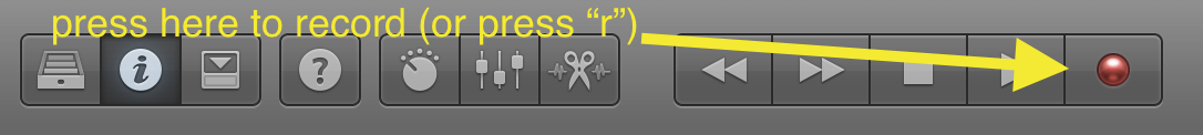 11- Listen to your test: Turn OFF the record enable button, UNMUTE the speakers (push the "Monitor" dial), bring the playhead to the beginning of your clip, and press spacebar. You should hear your test recording. Ask yourself the following questions: